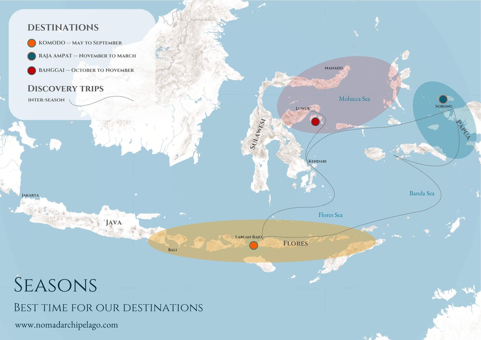 A visual guide to our seasons, routes, and regional rhythms across Indonesia